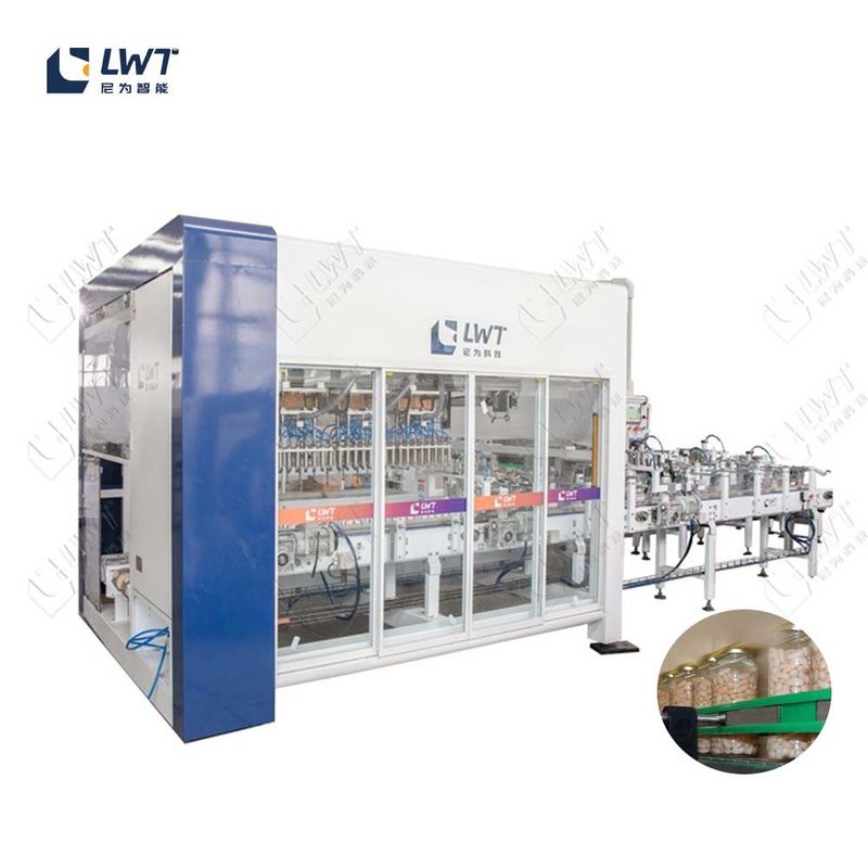 Cette machine est adaptée pour les pots en verre, les canettes de fer, les pots en plastique, les bouteilles à grande bouche, etc. principalement utilisée pour les haricots, les paillettes de pêche, les bandes de pêche, le Hawthorn, les fraises, les raisins, les abricots, le lychee.,Brassage dans la sauce de soja, viande, poulet, poisson, etc., toutes sortes de produits solides en conserve, mesure et remplissage.